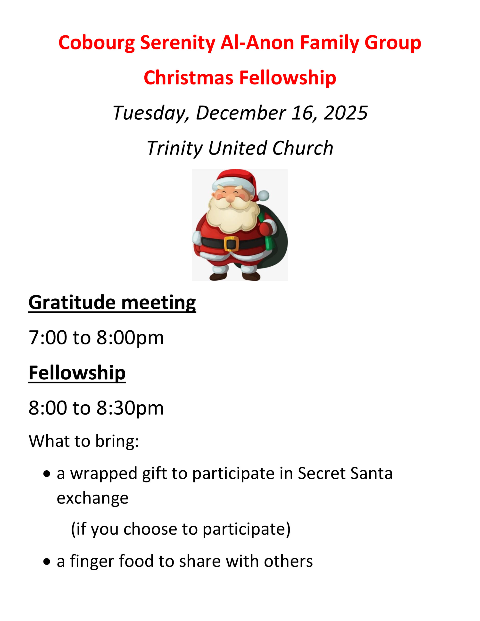 Cobourg Serenity Al-Anon Family Group Christmas Fellowship