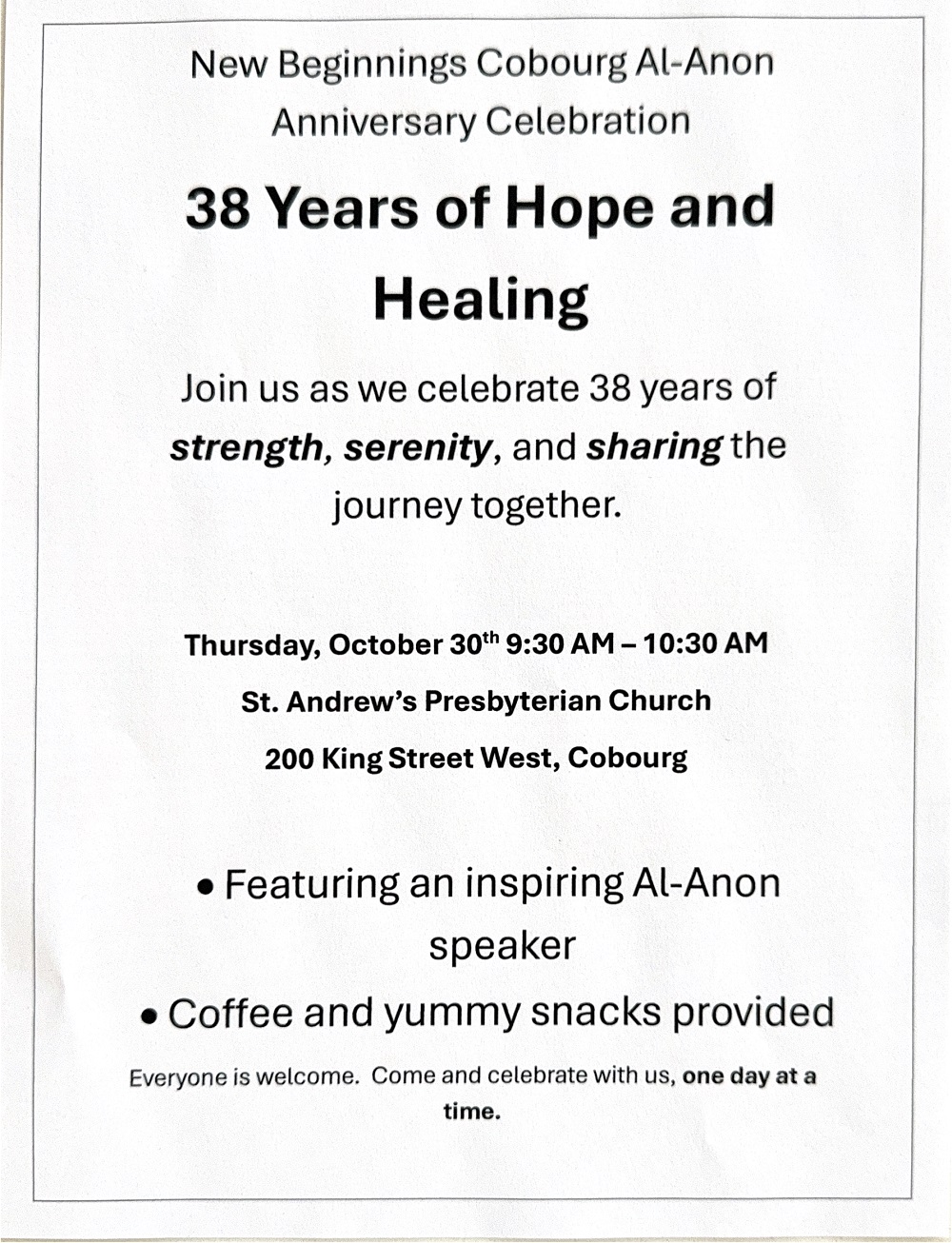 38 Years of Hope and Healing (St.Andrew’s Presbyterian Church) 200 King St.West,Cobourg